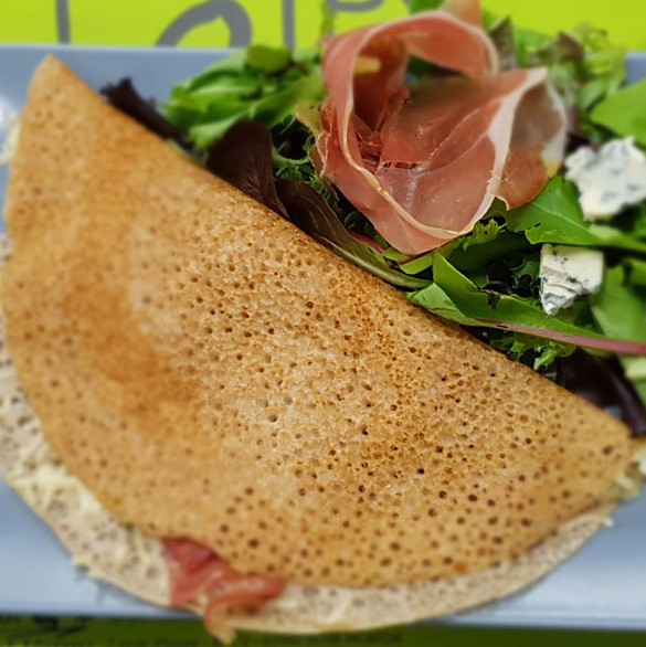 A la différence de la crêpe, la composition de la bourriole (levure de boulangerie, farine de blé noir, farine de froment et lait) lui confère moelleux et légèreté. Les bourrioles salées sont servies avec une salade
