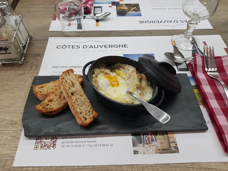 Œufs, jambon de pays d'Auvergne capelin, bleu d'Auvergne AOP et crème fraiche.